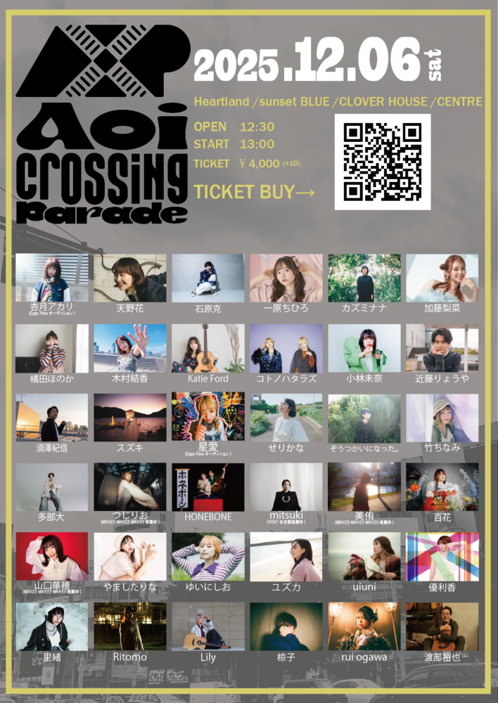『Aoi Crossing Parade』 SCHEDULE 2025/12/06(土) 名古屋4会場サーキットイベント OPEN12:30 / START13:00 TICKET🎫4,000円(D代別) 名古屋サーキットイベント🎪 名古屋のみんなにももっと出会いたいし見つかりたい! よろしくお願いします!! URLをコピーする 報告する